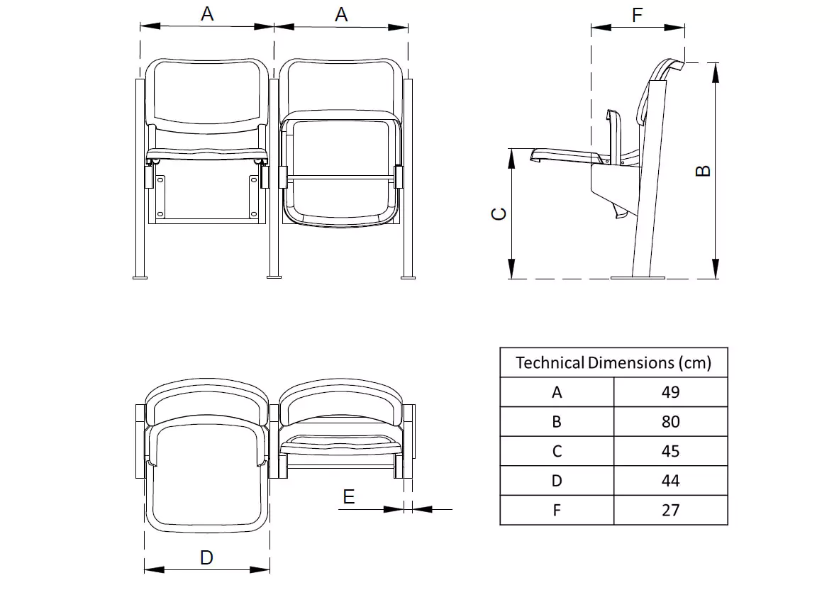 Azurith 04 Product Information With its robust frame and smooth folding system, this seat is perfect for multipurpose stadiums and arenas. It is available in custom colors and finishes, manufactured to European standards in Turkey.