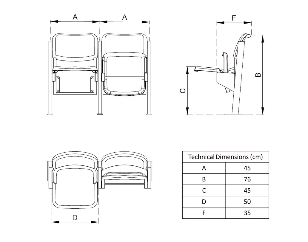 Azurith VIP Product Information This tip-up stadium chair combines silent folding mechanics with ergonomic support, providing premium comfort for dynamic event spaces. Manufactured in Turkey, it is built with fire-retardant, UV-protected materials for long-term use.