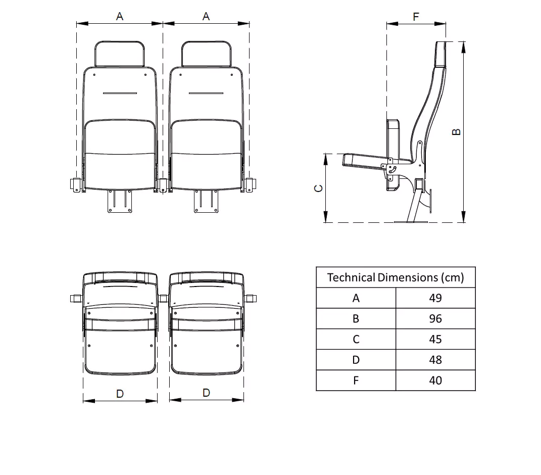 Diamond PRE 01 Product Information This VIP stadium seat is designed with high-density foam and premium upholstery, ensuring superior comfort for executive spectators. Made in Turkey, it complies with FIFA standards and fire-retardant regulations.