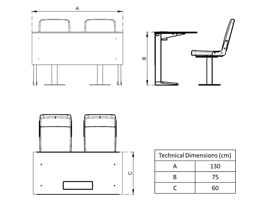 Media Desk 01 Product Information Our media desk accommodates up to three journalists, featuring scratch-resistant surfaces and cable management channels. Ideal for press tribunes and commentary boxes.